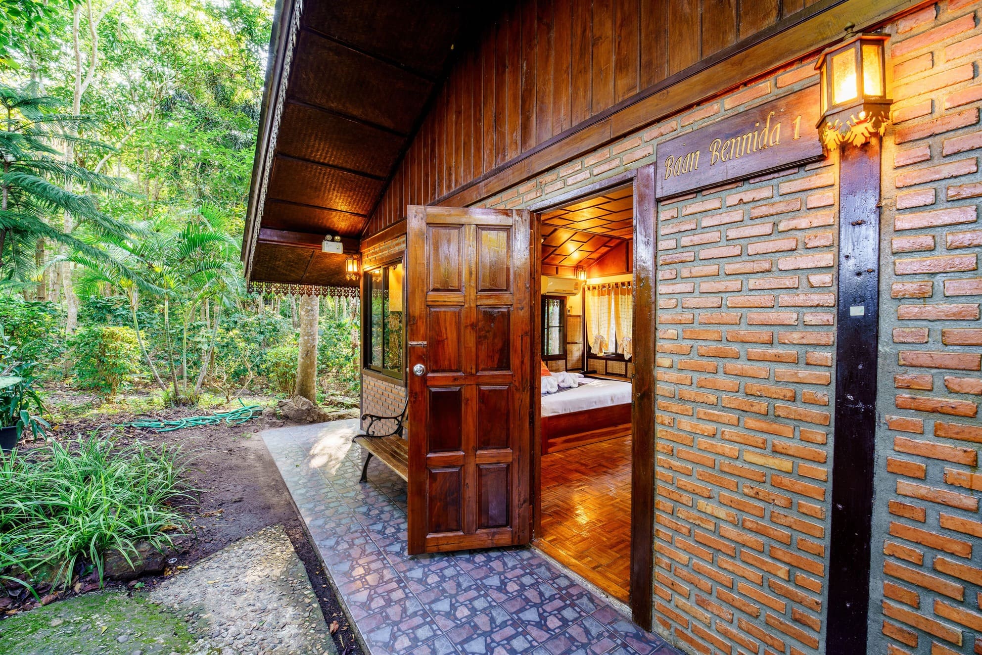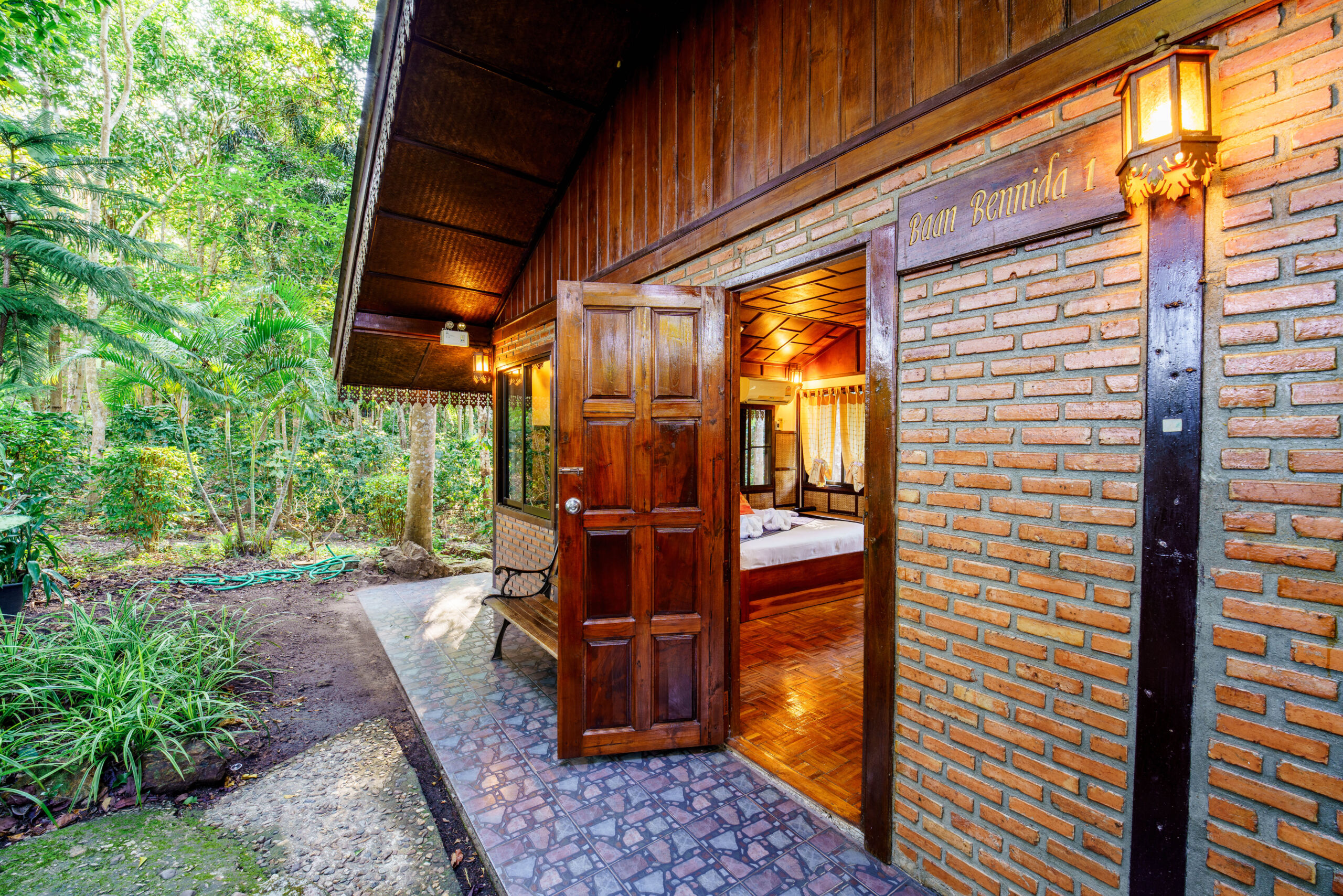 Baan Bennida at Marisa Resort offers an idyllic escape where simplicity meets charm. Designed as a private villa nestled deep within the lush forest, this accommodation blends warm wood and rustic brick textures, providing a sanctuary for you to recharge amidst the tranquility of nature.