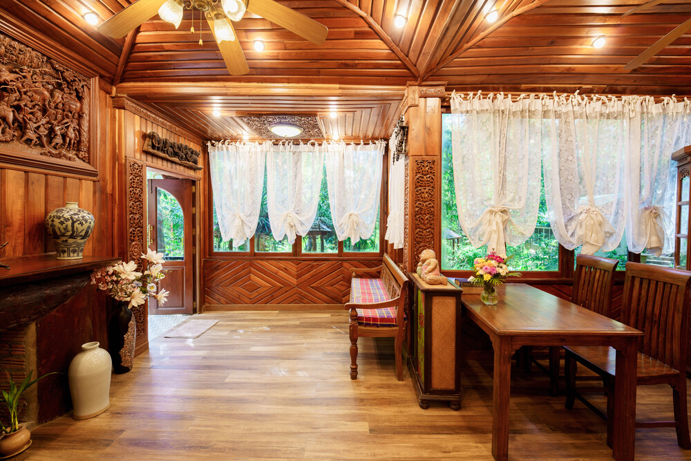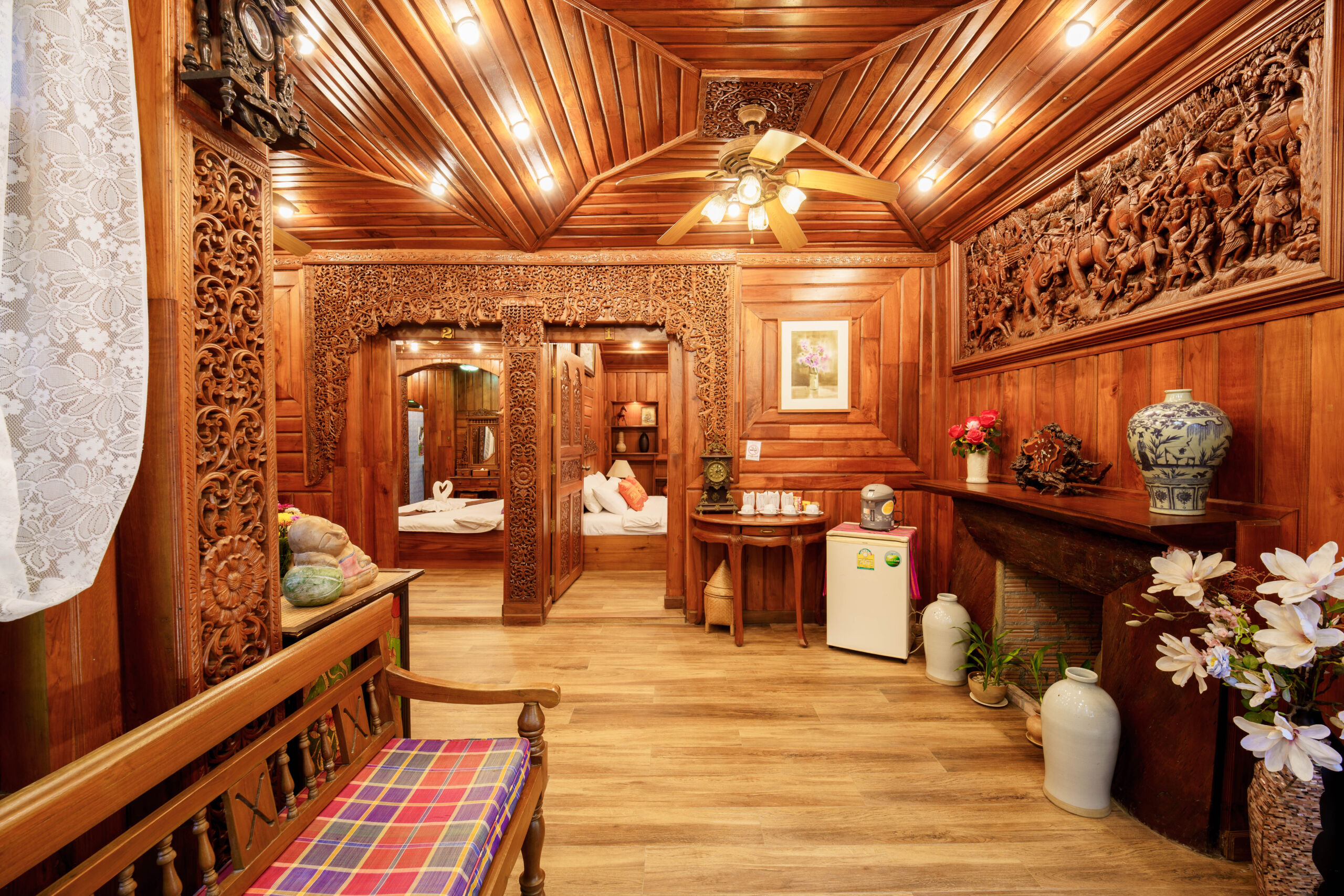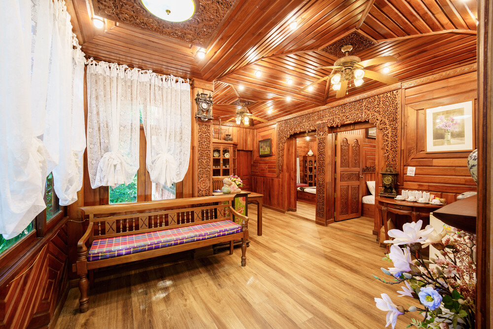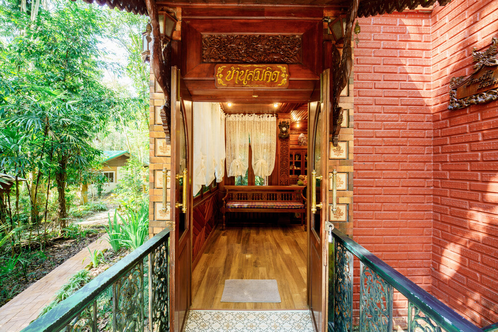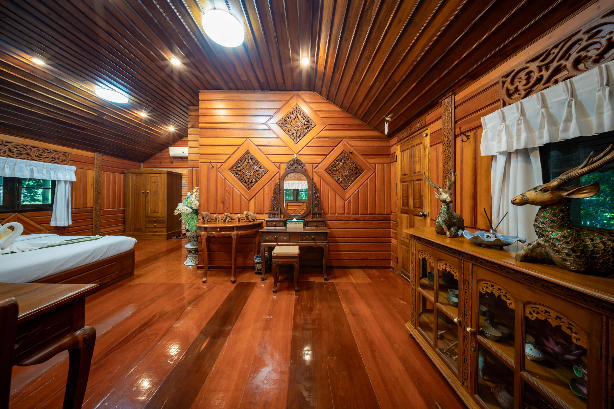 Baan Somkid at Marisa Resort is a grand wooden sanctuary designed for those who appreciate space and serenity. This majestic villa stands tall amidst lush greenery, featuring an expansive wrap-around balcony that invites the forest breeze in. With its warm, polished teak interiors and airy atmosphere, it’s the perfect gathering place for families or groups seeking a peaceful reunion with nature.