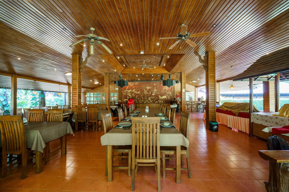 At Marisa Kitchen, located within Marisa Resort & Spa Chiang Dao, the most distinctive highlight lies in the seamless blend of traditional Lanna lifestyle and the abundant natural beauty of Chiang Dao. The restaurant is designed to offer a dining experience surrounded by lush gardens and tranquil greenery. Built primarily with authentic wood and high-pitched roofs that allow natural airflow, the space embraces the cool mountain breeze and creates an atmosphere of calm and relaxation. Guests who visit are not only treated to delicious cuisine, but also to a peaceful environment that feels as though they are dining in the midst of a quiet forest.