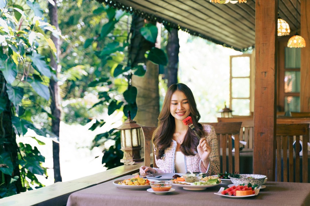 Beyond the flavors of the cuisine, the presentation of each dish reflects a harmonious balance between contemporary aesthetics and local cultural identity. Carefully selected tableware with elegant patterns and colors enhances the visual appeal of every plate. When served in the semi-outdoor dining area overlooking the surrounding scenery of the resort, the experience becomes far more than just a meal. Dining at Marisa Kitchen is a moment of relaxation and immersion into the simple yet refined lifestyle of Northern Thailand, making it an ideal destination for families and friends seeking to escape the bustle of everyday life and savor the authentic taste of Chiang Dao.